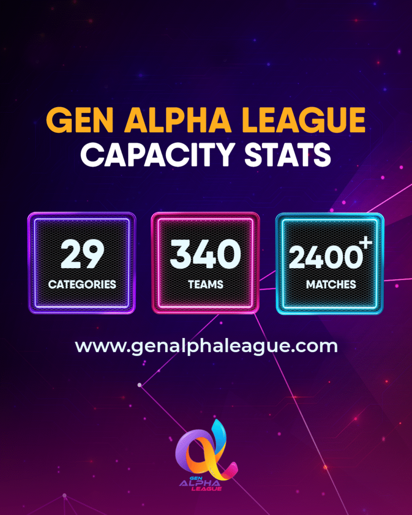 GEN ALPHA LEAGUE Follow us on Social Media Facebook Instagram Tiktok RegistrationCalendarCategories & FormatsRules & RegulationsClassificationsQualificationsSanctions SystemLeaderboardsNani Meet & Greet PicturesTables Season 2025Partners & SponsorsOpening Ceremony Photos RegistrationCalendarCategories & FormatsRules & RegulationsClassificationsQualificationsSanctions SystemLeaderboardsNani Meet & Greet PicturesTables Season 2025Partners & SponsorsOpening Ceremony Photos